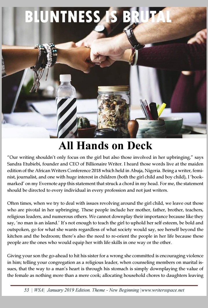 ALL HANDS ON DECK (published in WSA mag. Jan.2019)