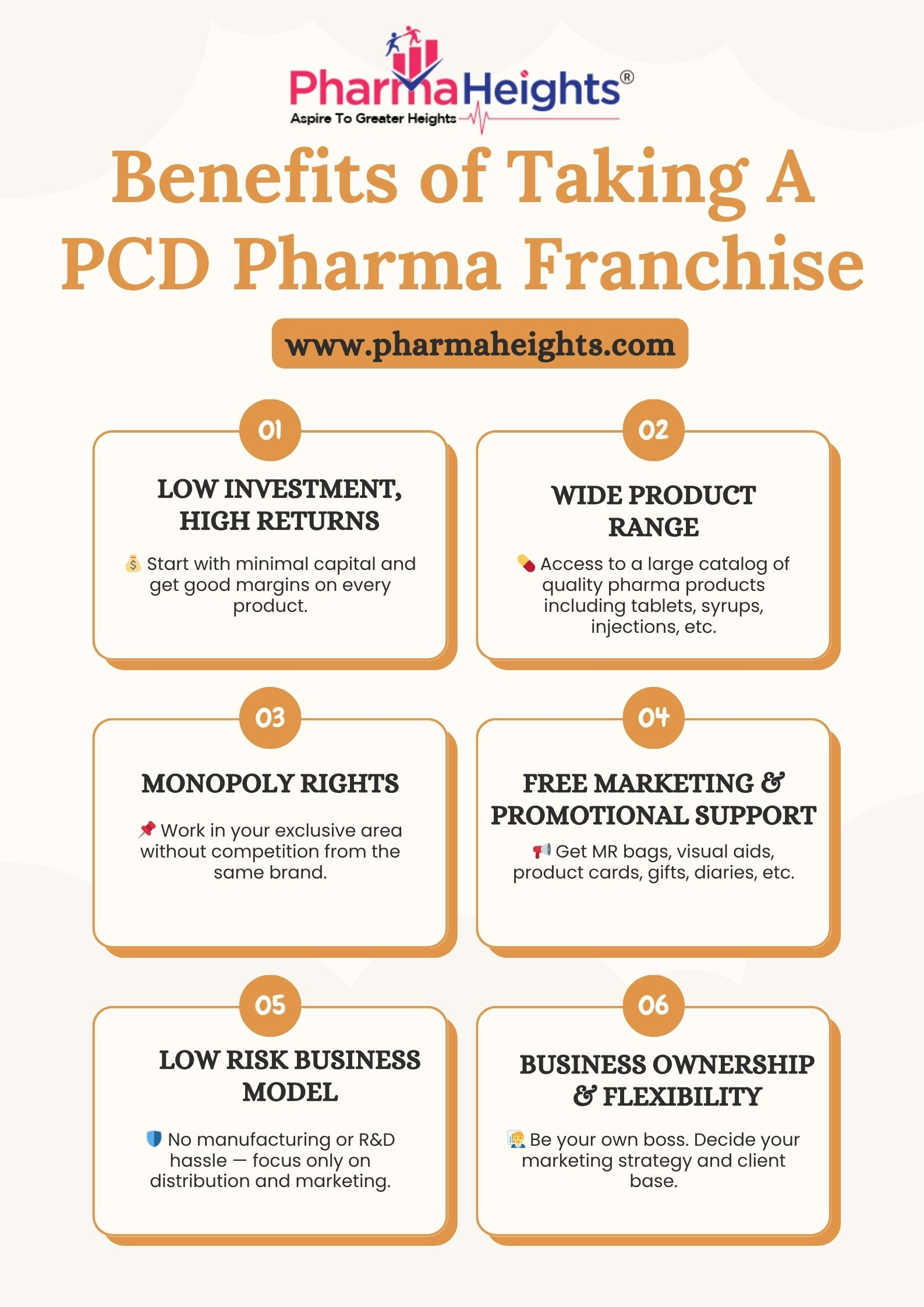 Discover the key advantages of starting your own PCD Pharma Franchise business through our latest infographic. Learn how low investment, monopoly rights, wide product range, and full promotional support can help you succeed in the pharmaceutical industry. Whether you're a medical representative or a first-time entrepreneur, this business model offers flexibility, high returns, and long-term growth. Explore why more professionals are partnering with trusted pharma companies today. Brought to you by Pharma Heights, A B2B pharma marketplace, your go-to platform for connecting with top-rated PCD Pharma Franchise Companies across India. Start smart. Grow fast. Visit Us: https://www.pharmaheights.com/pharma/pcd-pharma-franchise Call: +91-9996021308 Mail: info@pharmaheights.com