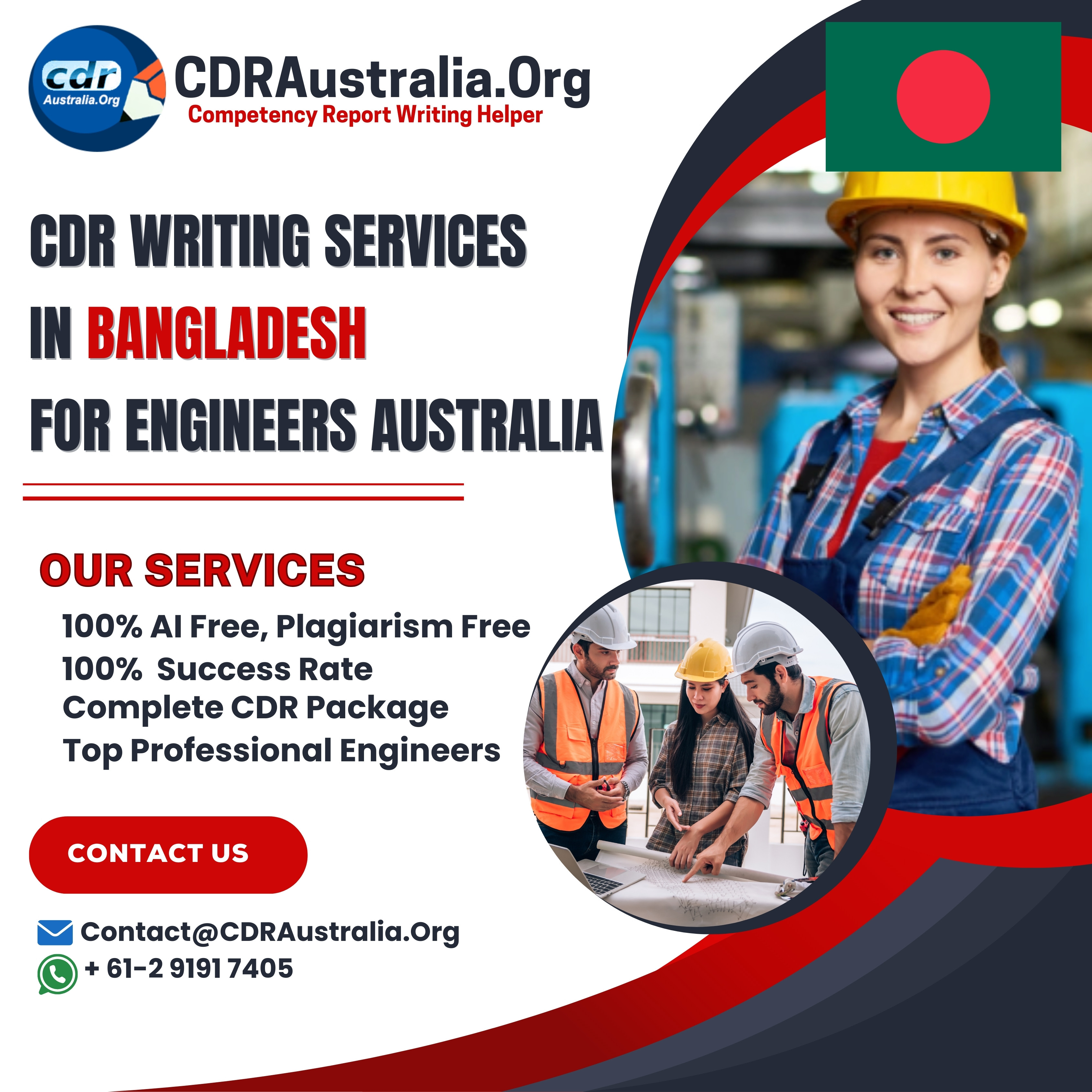 We at CDRAustralia.Org, offer exceptional CDR Writing Services in Bangladesh for Engineers Australia, guaranteeing a 100% AI-free process and an approval assurance. Our committed team of proficient CDR writers based in Bangladesh is prepared to develop high-quality competency reports for Engineers Australia. Please contact our specialists for further details. Contact Detail: Website: https://cdraustralia.org/bd/ Mail at: Contact@CDRAustralia.Org WhatsApp: +61-291917405