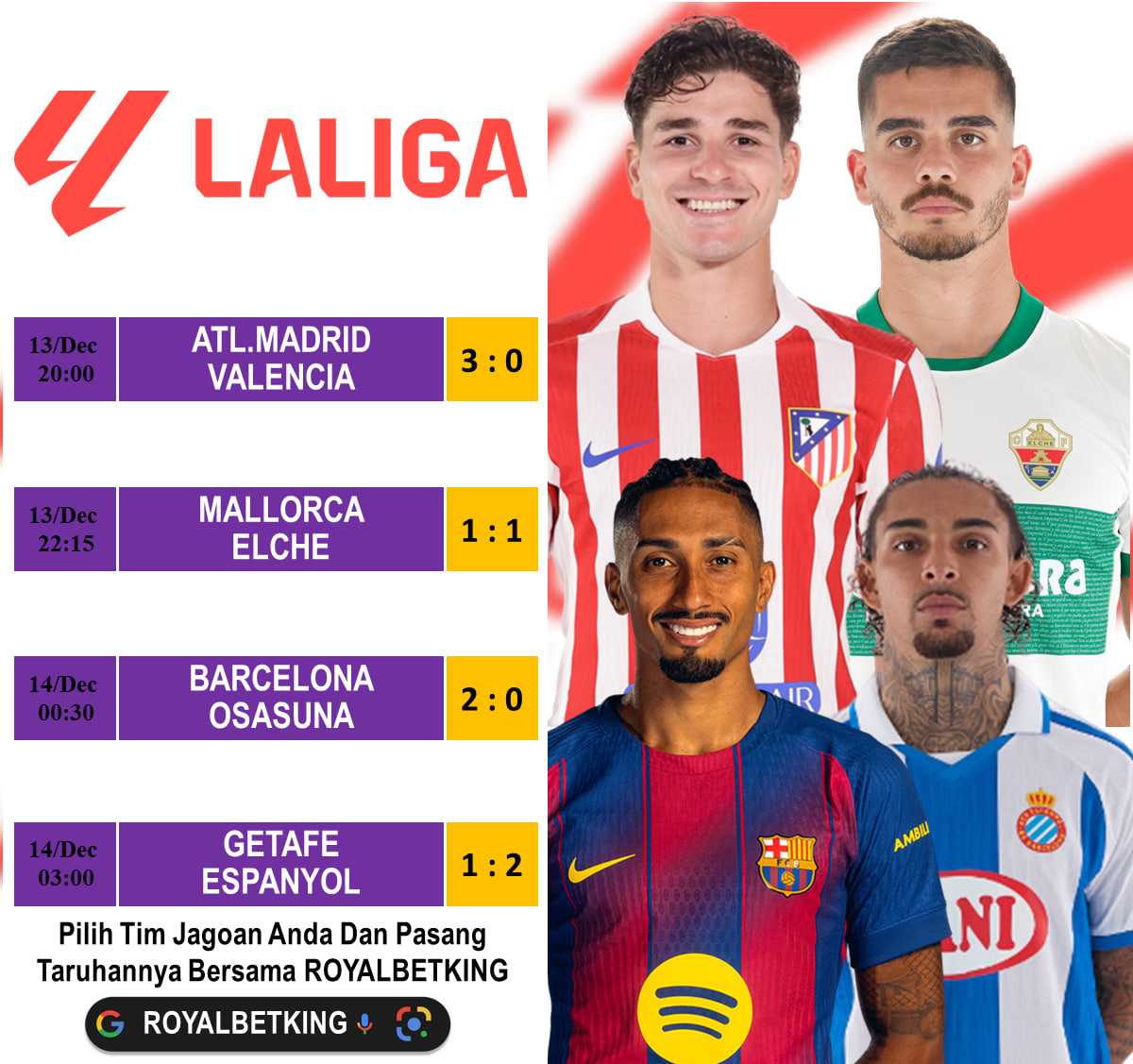 JADWAL PERTANDINGAN SPANISH LA LIGA | ROYALBETKING