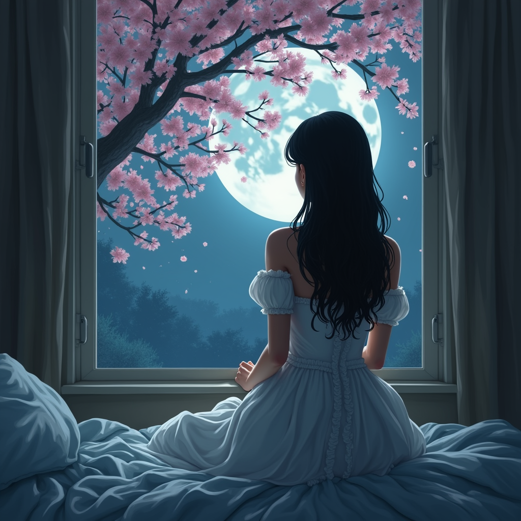 Unlike the sunrise or sunset, the Moon spread in a solitary majesty that, strangely melancholic, watched Matilde every night. Among a tangle of cherry tree twisted branches, the girl would hang from the window and confess her ideal world to the stars. In it, she slid through ballrooms and, specifically at five in the afternoon, would taste eccentric cookies with her refined friends. Even so, Matilde had none of that. She would look at the star and ask herself if the stars followed the Moon out of envy. She spent her nights talking to the little shining points in the sky, telling them how her sister was growing up and had stopped being interested in her figure, how she sank her fingers into sacks of grains and felt alive because of it, and how she sewed clothes her mother forbade her to wear. One night, surrounded by puffed sleeves and a big bow at her waist, she abandoned the stars and kneeled by the window, called the Moon with authority, and after ten years of watching the bright ball, talked about little Nancy, the human grains, and the vulgar dress she wore. Still, waning, the Moon fell silent. The stars, sympathizing with human pain, called Matilde and told her that next time, she should bring cookies, rise naked in the window, and show courage; she should abandon Nancy, and only then would she be fully surrendered to the Moon and have the right to a wish. So, she eagerly waited for daybreak and spent the whole morning working on soy cookies. That day, she didn't play with the grains, only tortured them in boiling water and crushed them so the dough would be light. At one point, Nancy, who rarely approached, came near the large stove and demanded a cookie. Blinded by love, Matilde closed her eyes, turned her back on her sister, stood in front of the oven, and ignored any complaints from the poor girl. When the sun rose from the horizon, she handed her clumsy clothes to her mother and instructed her to set them on fire. The woman then embraced Matilde and smiled, grateful that the girl no longer fantasized about ancient times and voluminous skirts. She ran her fingertips over the girl's back and thought that Matilde had been cured of her fertile imagination, and she believed she could hold onto her longer. However, that night, the young girl slipped away. She climbed the stairs in common clothes and with a wooden box decorated with a large white satin bow. Nancy, at the height of her thirteen years, followed her and knocked on the door for a long time, claiming the right to the soy grains. Amidst the muffled cries of her sister, Matilde undressed, looked into the mirror, and thought carefully about the wish she would ask of the Moon. She didn't like her reflection but hoped that at least Her Majesty might admire her. Then, she climbed onto the wooden window, held onto the latches, and stood up. The clouds had disappeared from the usually overcast sky. At that moment, Matilde puffed out her chest, took a deep breath, and, with determination, called the Moon, demanding attention. — Why do you dare to call me, Matilde? For so long, you ignored me to talk to the stars. — Because I fear you. I envy you. — And what do you desire? — I desire a winter prince, eccentric cookies, and friends to have tea with. The wind, filled with leaves, hit the young girl, who, surrendered, closed her eyes and embraced her wish. She awoke in a blue ballroom gown, with large, puffed sleeves that caught anyone's attention. Still at night, she walked down the stairs and went to the door, waiting for the unknown prince. However, she was surprised by his beauty and kindness. She walked with him to the street and left her house. Watching from afar, she abandoned her world, gazing at the white house. But even in her moment of freedom, carriage, and magic, she noticed an animal stretched out by the edge of the lake, seeming to have rolled three floors below her window. Ignoring it, she was led to an old ballroom where she danced all night long and fell in love with the man with the perfect face. The next afternoon, she got ready to meet her elegant friends and spent the sunset eating unique cookies. The problem was that this happened every day. There was no escape. Monday, Tuesday, Wednesday, she went out to dance with a boring man and listened to her friends talk about trivialities. She spent her days chasing Nancy, who remained angry about the use of the soybeans and ignored her. In reality, Matilde had passed away a long time ago. She wandered through the old house and watched her sister grow. The girl fled from the breezes Matilde caused, avoided being alone, and never dared to enter the room facing the cherry tree. Nancy hated the Moon. She agonized night after night until the darkness passed. Somehow, she was afraid of falling in love with the Moon, terrified of the simple idea of understanding why her sister hung from the wooden ledge, and why, one day, it broke loose. Perhaps the Moon never responded to her.